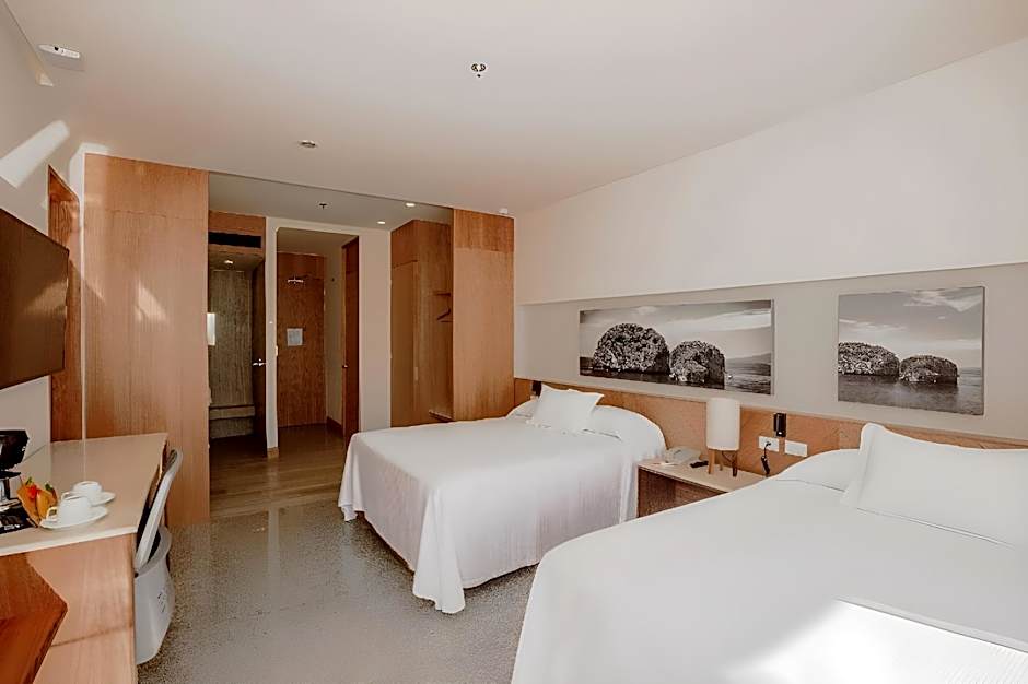 Deluxe Panoramic Bay View includes 2 queen-size beds 150-154 width plus balcony, desk, cable tv, hairdryer, ironing set, and safe and is Wheelchair-accessible.